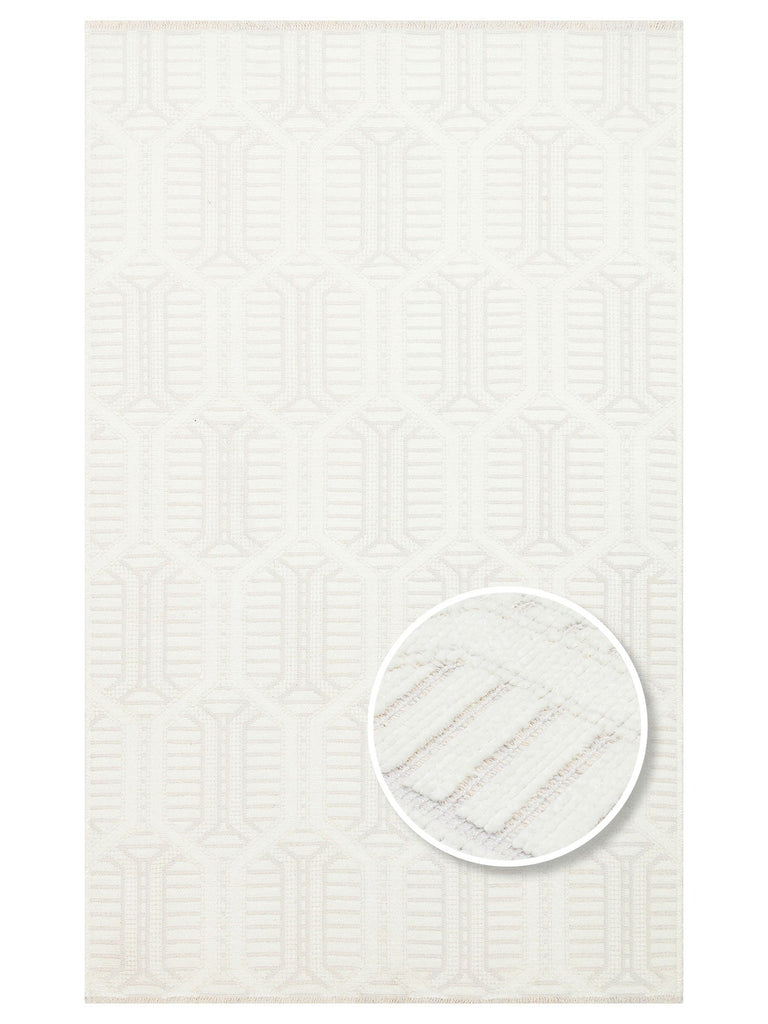 Lino Serisi Mutfak Oturma Odası Salon Antre Koridor Yıkanabilir Kaymaz Taban Pamuklu Kilim PLAINCREA - Carpetdocia