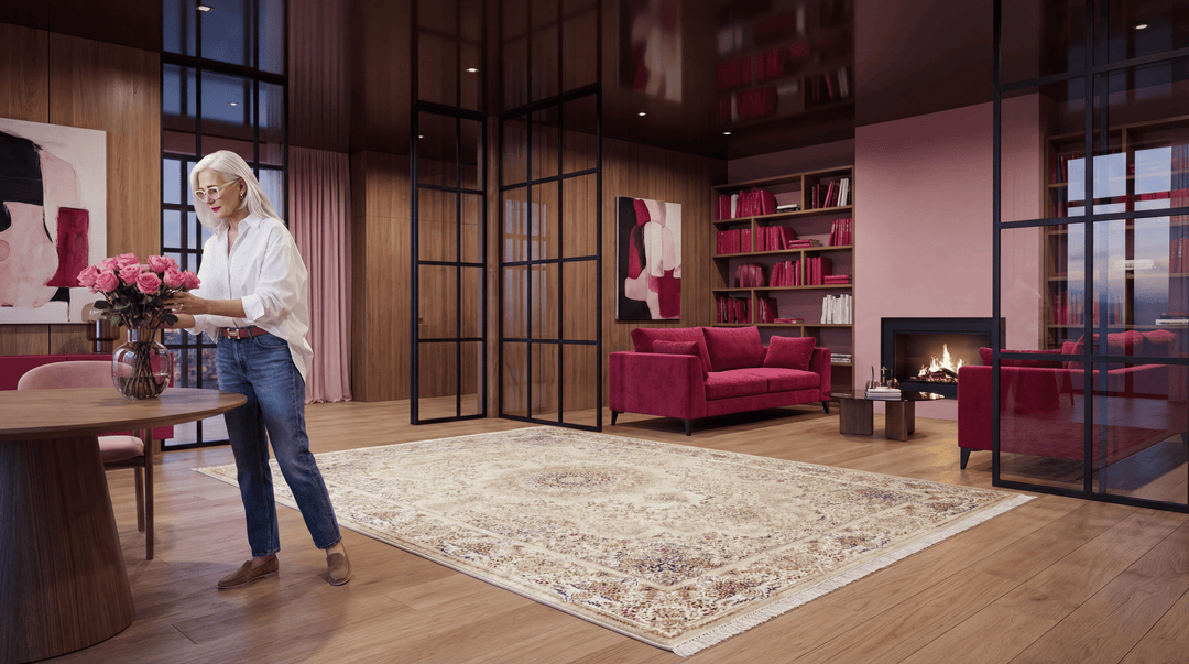 In your weekly cleaning routine, always prefer vacuum cleaners with low suction power. High-powered upright vacuums and stiff brushes can harm the natural structure of handwoven threads. To balance the reaction of natural threads to light and prevent regional tone differences (fading), we recommend changing the direction of your carpet every 2 to 6 months.